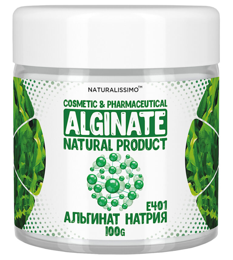 Альгінат натрію – дозволена харчова добавка, яка крім вживання в їжу має ряд корисних властивостей, в тому числі і терапевтичного характеру. Умовне позначення добавки, під яким вона значиться на продуктах харчування і в складі косметичних препаратів, – Е401. У чистому вигляді виглядає порошком бежевого кольору, може бути в гранулах або пластинах. Розчиняється у воді, утворюючи в’язку субстанцію.