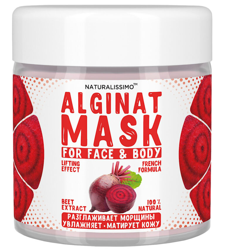 Альгінатна маска з буряком – професійне засіб, створений для догляду за шкірними покривами будь-якого типу. Основна діюча речовина – альгінова кислота, що отримується з бурих морських водоростей. Цінною властивістю її солей – альгинатів є здатність зв’язувати значні обсяги рідини, сприяючи активному і глибокому зволоженню. Біоактивні компоненти буряк введені до складу засобу для досягнення поживного і омолоджуючого ефекту.