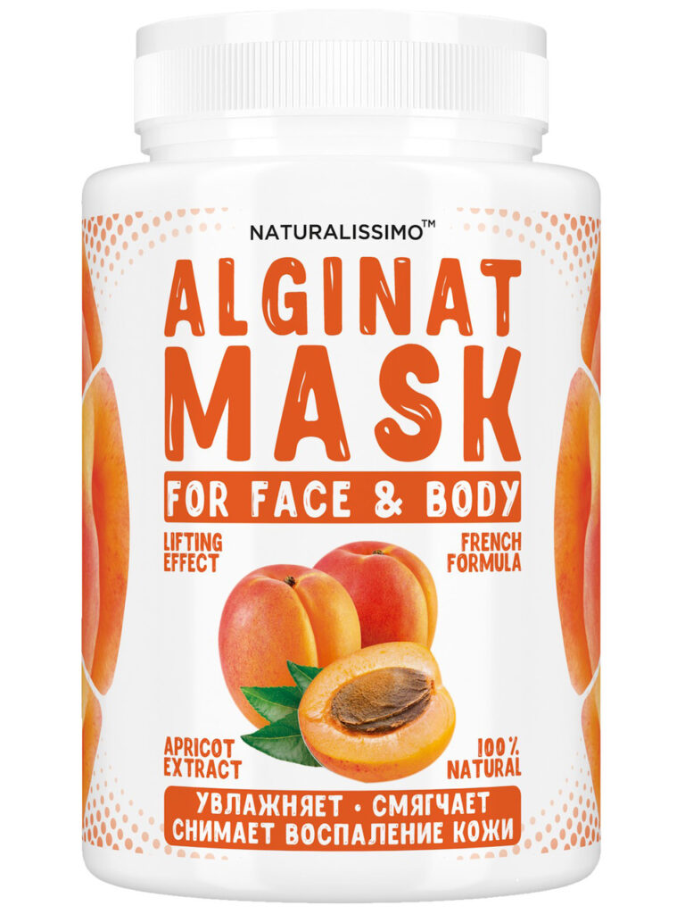 Альгінатна маска з абрикосом – косметичний засіб, що забезпечує професійний догляд за шкірою. Основу продукту становить солі альгінової кислоти, що має морське походження. Вони забезпечують здатність зв’язувати та утримувати значну кількість рідини разом з розчиненими цінними складовими, забезпечуючи шкірі ефективне живлення і зволоження. Альгінатна маска додатково збагачена вітамінами, мікроелементами і біоактивними компонентами, отриманими з абрикоса.