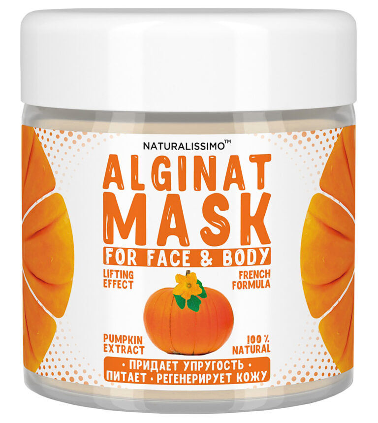 Альгінатна маска з гарбузом – сучасний продукт, призначений для професійного догляду за епідермісом. Солі альгінової кислоти, що становлять основу засоби, покликані зв’язувати рідина в стані, що дозволяє клітинам шкіри активно поглинати вологу. Глюкоза і вітаміни, отримані з гарбуза, забезпечую поживне і тонізуючу властивості маски. Засіб не викликає звикання і демонструє результати з першого застосування.
