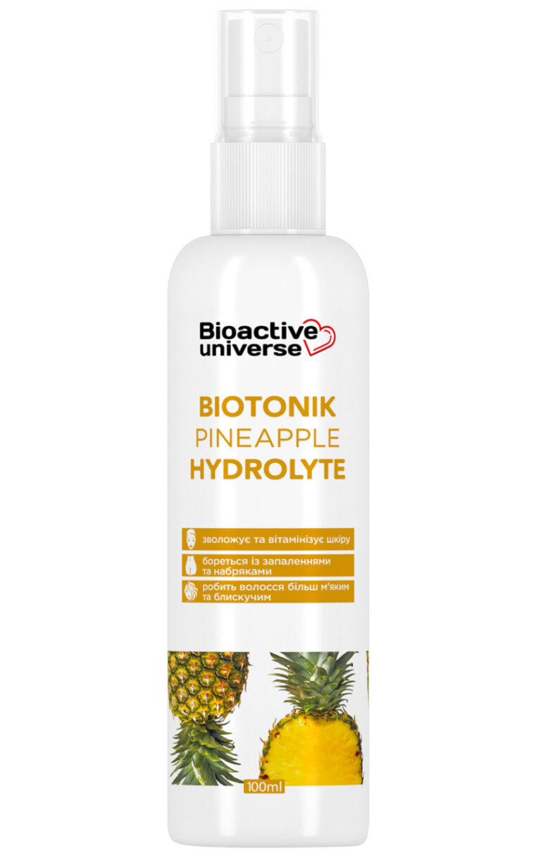 Гідролат ананаса являє собою засіб для очищення, зволоження, заспокоєння та освіження шкіри, отриманий шляхом дистиляції ананасових плодів. Завдяки своєму унікальному складу та корисним властивостям, цей тонік є ідеальним вибором для підтримки здоров'я та краси. Для використання достатньо нанести невелику кількість на обличчя та шию після вмивання. Аромат ананаса зробить процес ще приємнішим та освіжаючим. І Ви можете використовувати його як основу під макіяж або просто освіжаючий спрей протягом дня. Це натуральний продукт, який не містить синтетичних добавок чи шкідливих хімічних речовин. Він підходить для всіх типів шкіри та допоможе досягти бажаного ефекту приємним шляхом. А замовити Гідролат ананаса оптом чи в роздріб Ви завжди можете у компанії виробника – «Bioactive universe» (Біоактив юніверс).