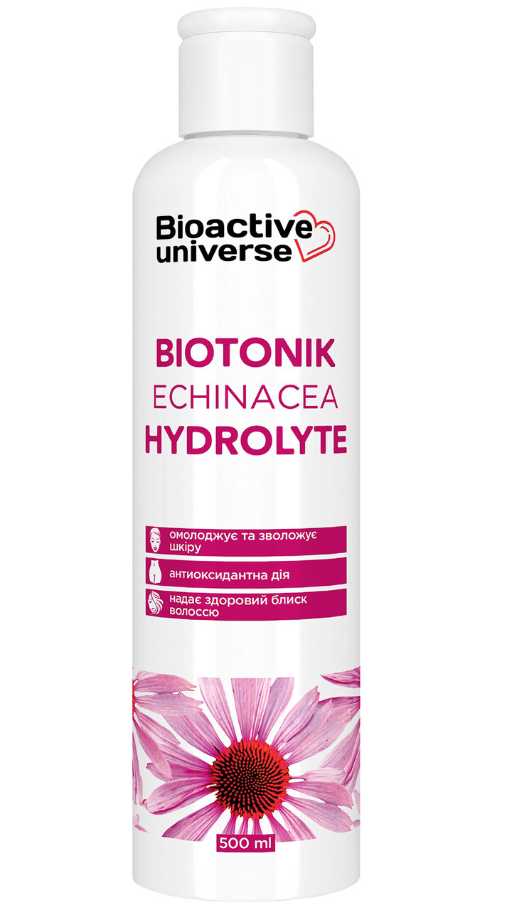Гідролат ехінацеї, омолоджує та зволожує шкіру, для обличчя тіла та волосся, тонік 500 мл, Біоактив
