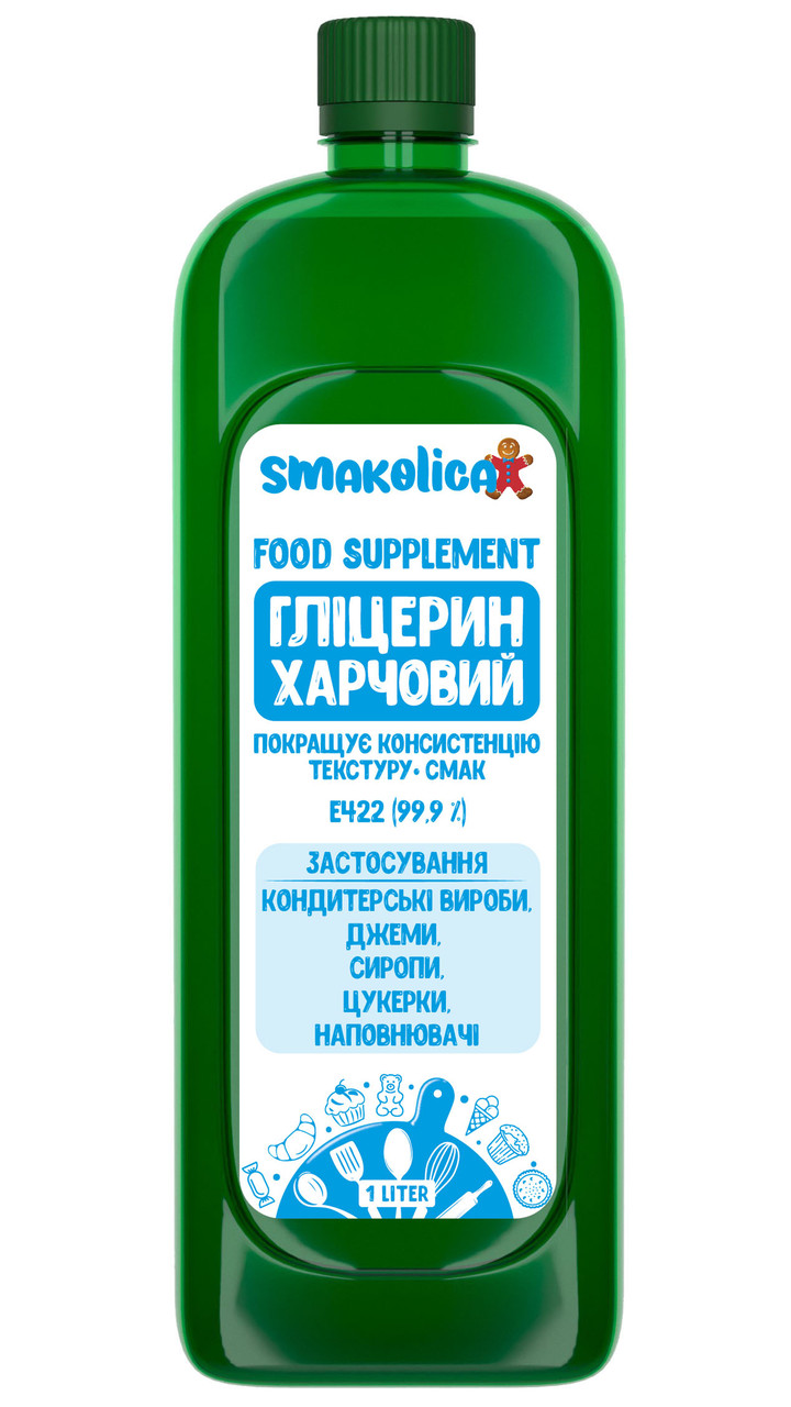 Гліцерин Фарм (Е422), також відомий як гліцерол, є натуральним алкоголем, який має безліч корисних властивостей для здоров'я. Він має низьку калорійність, низький глікемічний індекс та може допомогти покращити травлення та метаболізм. Якщо Ви шукаєте заміну цукру або просто хочете додати щось нове та корисне до свого раціону, гліцерин може бути відмінним вибором. Продукт є натуральним зволожувачем, який допомагає зберегти вологу у виробах, а також може використовуватись у кулінарії для покращення смаку та якості страв. Його використовують для створення різних продуктів, таких як кондитерські вироби, напої, заморожені десерти та інше. Він широко використовується як харчова добавка і консервант. Дози препарату можуть відрізнятися залежно від виробу, але зазвичай не перевищують 5% від загальної ваги. І купити гліцерин оптом або в роздріб Ви можете прямо у виробника (ТМ «Smakolica»).