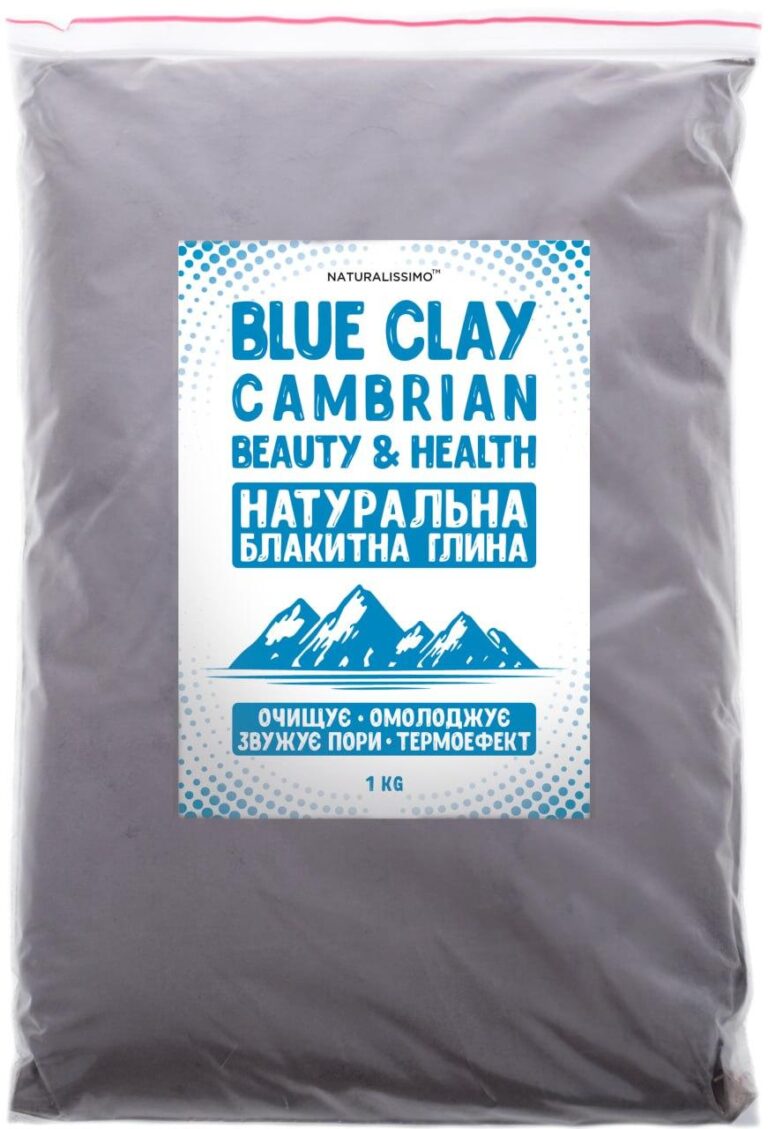 Блакитна глина, відома також під назвою кембрійської, в очищеному подрібненому вигляді являє собою порошок, який набуває в'язкість при контакті з водою. Хімічний склад мінеральної сполуки включає кремнезем, фосфати, радій і калій, які не зустрічаються у вільному вигляді і є дефіцитними в організмі людини.