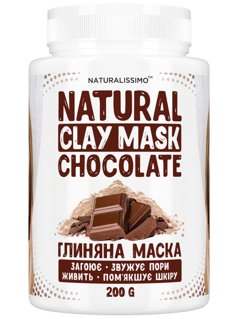 Глиняна маска із шоколадом сприятливо впливає на шкіру обличчя. Її широко застосовують як у професійних салонах, так і в домашніх умовах для очищення й матування жирної й оздоровлення схильної до вугрової висипки шкіри обличчя. Шоколадна маска з блакитної й білої глини здатна ефективно впливати на обмінні та відновлювальні процеси на клітинному рівні.