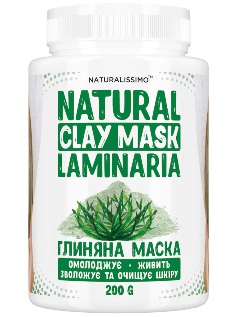 Глиняна маска з ламінарією являє собою суміш цих двох природних компонентів. У своєму складі цей косметичний засіб має великий спектр мікроелементів і мінералів. Універсальна маска з ламінарії (водоростей) у поєднанні з білою й блакитною глиною може використовуватися для всіх типів, незалежно від віку: від прищів, мімічних і дрібних зморщок і для омолодження обличчя.