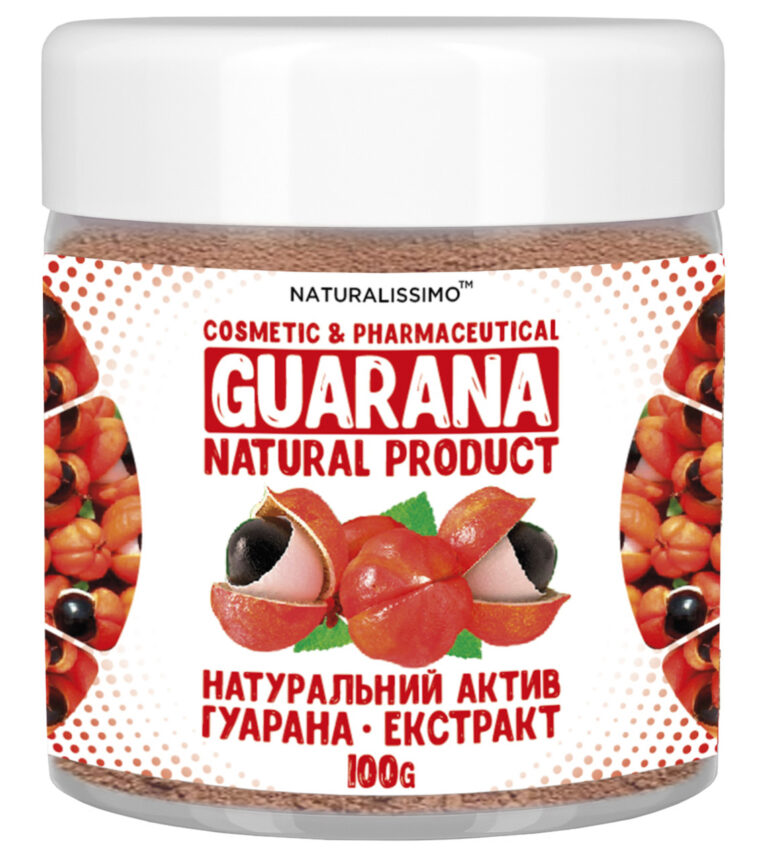 Гуарана – дрібнодисперсний порошок бежевого або світло-коричневого кольору, що видобувається з насіння рослини сімейства ліан. Містить значну концентрацію натурального гуаранина, вітамінів і мінеральних речовин, які надають стимулюючий вплив на організм. Не втрачає властивостей при подрібненні і зберіганні, що дозволяє використовувати порошок для приготування енергетичних коктейлів, напоїв або для комплексного спортивного харчування.