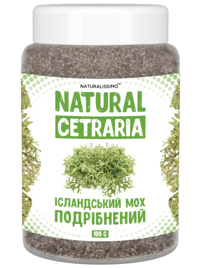 Ісландський мох (цетрарія) — рослина родини лишайників, що росте переважно в місцевості з м'яким кліматом і достатньою вологістю. Унікальна рослина фактично складається з двох організмів, що взаємовигідно доповнюють один одного — мікроскопічної водорості та гриба. Цей симбіоз і визначає хімічний склад препарату: слиз, вітаміни, органічні кислоти, мікроелементи. Низькотемпературне сушіння в промислових умовах забезпечує максимальну збережність усіх цінних компонентів.