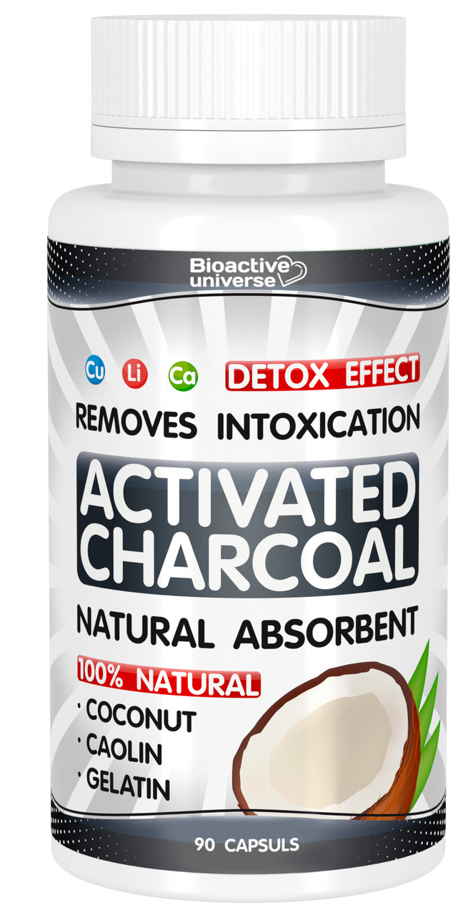 Активоване вугілля виробляється з певних сортів кокосової шкаралупи, продукт повністю натуральний і має природне походження. Також капсули містять допоміжні речовини — желатин і каолін. Желатин, наявний у капсулах, вважається допоміжним компонентом, що поліпшує оздоровлювальну дію, зокрема природне джерело білків і амінокислот у раціоні, активізує вироблення шлункового соку, що внаслідок нормалізує процес травлення загалом. Каолін, у цих капсулах, насичує організм кальцієм, калієм, натрієм, залізом, магнієм, кремнієм, фосфором і багатьма іншими корисними для здоров'я елементами. Він зміцнює імунітет, покращує еластичність судин і стимулює регенерацію шкіри, бере активну участь в обмінних процесах і підвищує ефективність інших корисних компонентів цього сортувального продукту.