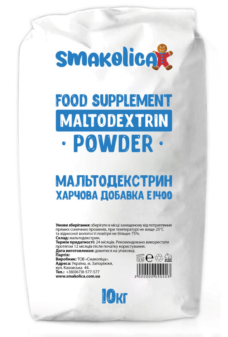Мальтодекстрин (декстринмальтоза, патока крохмальна) від ТМ “Смаколиця” близький за своїми властивостями до глюкози і крохмалю, через спорідненість з ними. З його допомогою формується густа і повітряна текстура, поліпшуються смакові якості виробів і заповнюються енергетичні витрати організму. Висока калорійність у поєднанні з хорошою розчинністю в рідинах, помірним, м'яким і приємним смаком робить його більш бажаним у складі багатьох продуктів, ніж звичайний цукор. Патока допоможе з правильним набором ваги, адже вона швидко і легко засвоюється в травному тракті, але повільно розщеплюється, що сприяє тривалому насиченню організму енергією і зростанню м'язової маси. А відсутність різких стрибків глюкози в крові, не призводить до накопичення жирової тканини.