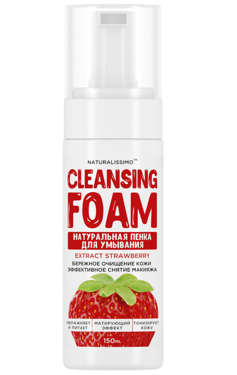 Спеціально для дбайливого очищення шкіри обличчя та зняття макіяжу розроблена ТМ Naturalissimo ніжна пінка з екстрактом полуниці. Завдяки збалансованому складу та натуральним компонентам, засіб не викликає подразнення, оптимально підходить для будь-якого типу шкіри та віку. Ніжна та легка консистенція, не тільки усуває всі забруднення, але також насичує епідерміс киснем і корисними речовинами.