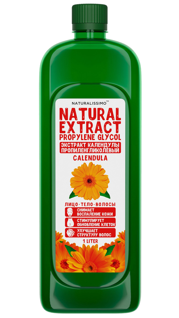 Пропіленгліколевий екстракт календули — речовина, що отримується за допомогою перенесення природних біоактивних компонентів і мікроелементів із рослинної сировини в пропіленгліколь. Така основа забезпечує зручну рідку форму препарату, тривалий термін зберігання й забезпечує утримання необхідної концентрації вітамінів і елементів із суцвіття календули лікарської (відомої, як нігтики).