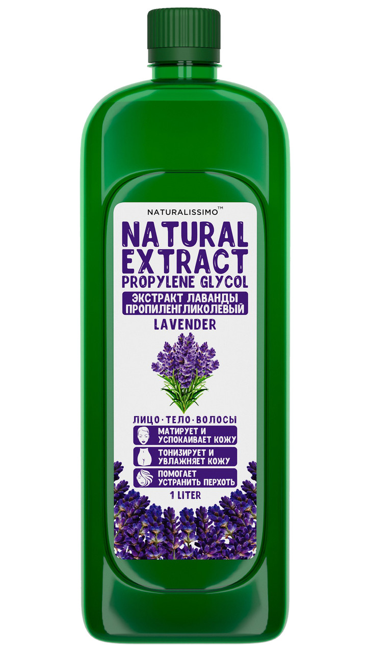 Пропіленгліколевий екстракт лаванди — цінна косметична сировина, що отримується внаслідок низькотемпературної екстракції суцвіть лаванди за допомогою пропіленгліколю. Цей двовалентний спирт здатний розчиняти та зв'язувати жиро- та водорозчинні компоненти рослинного походження, а також перешкоджати розмноженню бактерій і розпаду компонентів готового косметичного продукту. Ароматна рослина насичує препарат біофлавоноїдами, ефірними оліями, леткими сполуками, дубильними речовинами, які сприятливо впливають на шкірні покриви, волосся, нервову систему.