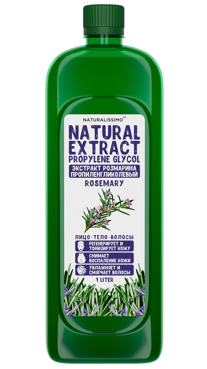 Пропіленгліколевий екстракт розмарину — натуральний продукт, який використовується як біологічно активна домішка, препарат фітотерапії та активна речовина для виготовлення косметики. Як компонент, що забезпечує екстракцію, слугує пропіленгліколь. Особливість цього двовалентного спирту полягає в здатності зв'язувати жиро- та водорозчинні компоненти, а також перешкоджати розвитку хвороботворних мікроорганізмів. Розмарин передає рослинному екстракту ефірні олії, ароматичні компоненти (розмарицин, карнозол), алкалоїди та дубильні речовини.