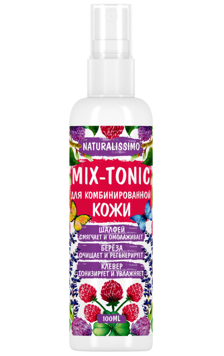 Мікс-Тонік для комбінованої шкіри, 100мл — це натуральний засіб для нормалізації водно-жирового балансу, матування та зволоження шкіри, складається з купажу рослинних, біоактивних екстрактів. Делікатно усуває жирність і блиск в Т-зоні обличчя (ніс, лоб, підборіддя), а також інтенсивно зволожує U-зону (щоки, скроні, вилиці). Як показує практика, мікс-тонік (гідролат) впливає на епідерміс м'яко, завдяки натуральному складу і відсутності агресивних хімічних компонентів. Сприяє звуженню пор, зменшує запальні процеси і значно покращує стан шкіри за умови регулярного застосування.