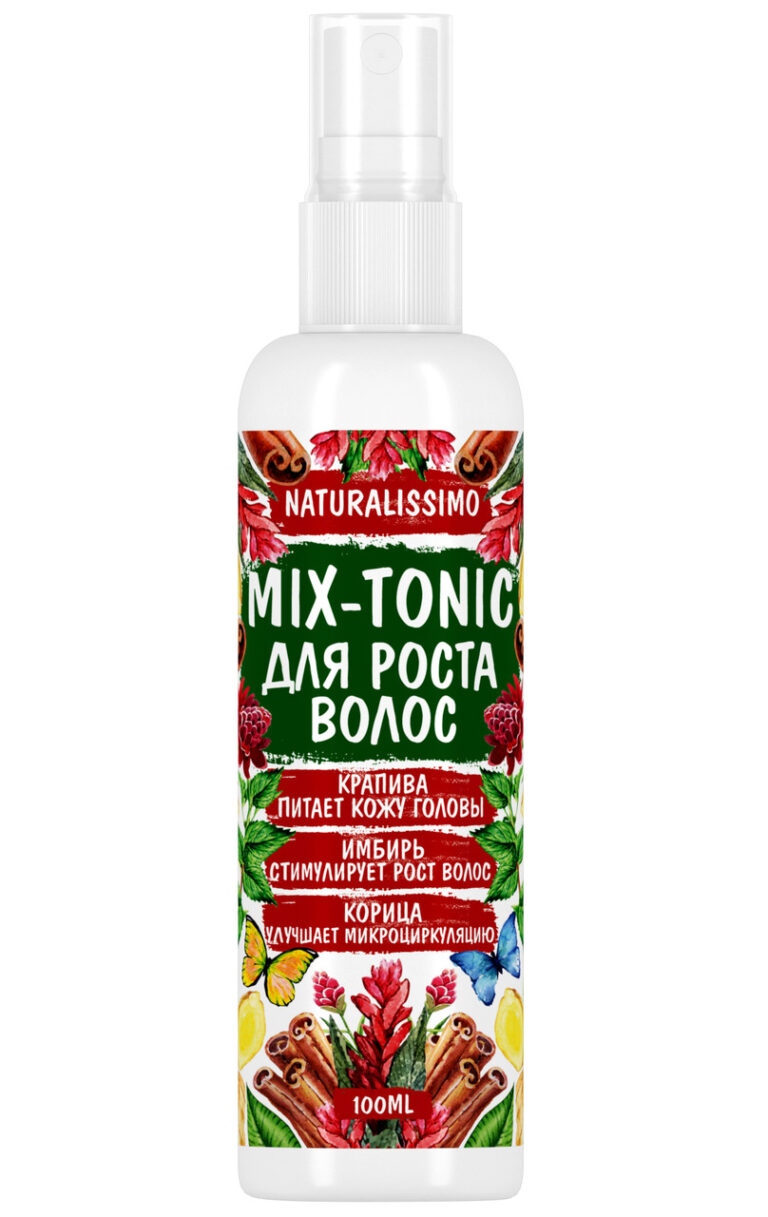 Мікс-тонік для росту волосся (гідролат, запашна вода) — це натуральний косметичний засіб, що поєднує в собі купаж рослинних біоактивних екстрактів календули, імбиру та кропиви, що покращує мікроциркуляцію шкіри голови, стимулюючи до росту волосяні фолікули. Ефективна формула в поєднанні з натуральними концентрованими екстрактами спрямована на активацію процесів росту волосяних цибулин, оздоровлення шкіри голови та зміцнення коренів волосся. Має м’який вплив і, згідно з дослідженнями, демонструє високу ефективність уже після перших тижнів щоденного використання.